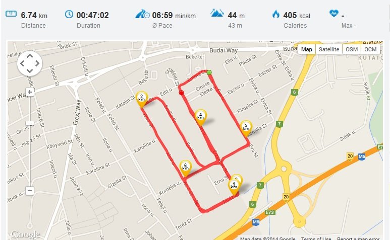 Ez volt a mai sport. Háztól-házig pont 500 kcal lett a 3 nagykör. Még sose mértem le pont így, de ez jó, mert könnyen észben tartható nem is kell GPS.