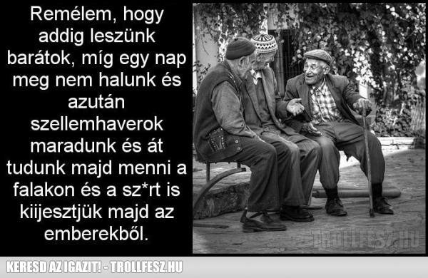 És vannak a barátok. Akik nekünk család. Nagycsaládunk nincs, barátaink vannak. Hosszú, sokat próbált, kitartó régi barátságok. Akikkel ha nem találkozunk jódarabig is ugyanúgy ülünk, és beszélgetünk, mit előtte. Akiknek ismerjük a családját, feleség, férj, gyerekek, szülőket. Akik úgy mutatnak be a sajátjuknak, hát ő pont olyan mint a tesóm. És úgy is kezelnek. Akik ha kidőltünk, eljönnek bevásárolni akár. Akik ha kell elvisznek bárhová. Akikkel együtt utazunk. Akikkel nyáron nagyokat beszélgetünk a kertben. Akik segítenek, akik együtt nevetnek, együtt sírnak velünk. Akik ránk szólnak, hogy hahó, ezt nem kéne, akik bíztatnak, hogy hajrá, vágj bele. Akikkel bármit meg lehet beszélni, nem ítélnek. Akiknek éjfélkor is simán felveszi az embert a telefont, és ha kell rohan, akik ugyanezt megteszik értünk. Akik nem kérnek semmit, és akiktől nem kérünk semmit.