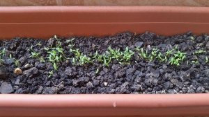 Fellazítottam a talajt, belocsolgattam, hogy ne olyan legyen mint a kavicságy, vettem magokat, és hajrá. Végül elsőre úgy döntöttem, hogy petrezselyem lesz. Általában veszek a boltban cserepeset, de egy közepes ládában gondoltam csak megterem pár főzelékre való itt is. Ha sikerül, akkor szüret, és fagyasztás, majd új kör. Meglesz télre az ellátmány. Eddig úgy néz ki sikeres vagyok, locsolni is megfelelőképp tettem, mert szépen ki is kelt. Most kíváncsian várjuk családilag mi lesz belőle.
